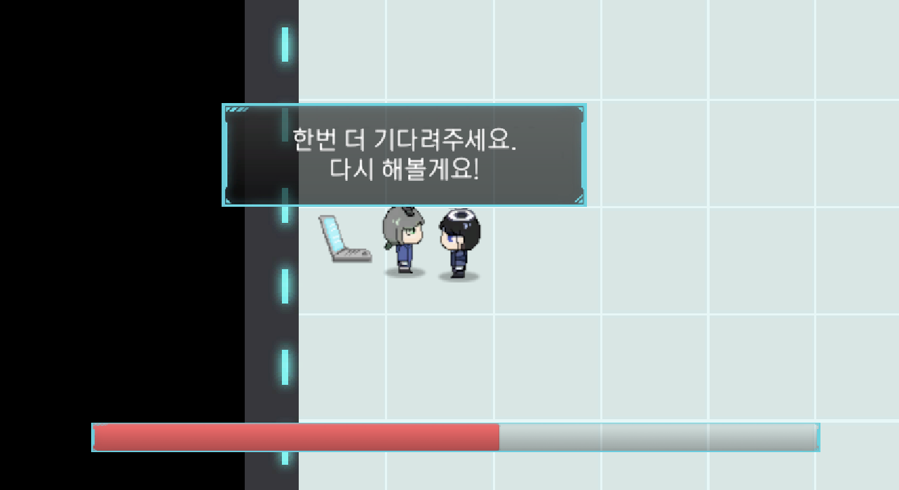 하지만 1페이즈가 끝나고 다시 말을 걸면 그 대사가 여전히 나타나는 오류가 있었다; 내가 원한건 2페이즈 시작 대사였어...